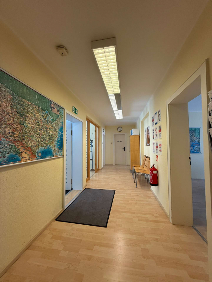 Die Einheit umfasst insgesamt fünf nahezu identisch geschnittene Büroräume, die eine flexible Nutzung ermöglichen. Ergänzt wird das Raumangebot durch ein separates Büro, das durch ein großes Glaselement zum Flur hin abgetrennt ist und sich ideal als Besprechungsraum oder Leitungsbüro eignet.