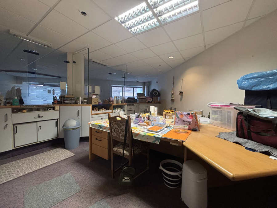 Neben dem Hauptbereich stehen weitere Räume zur Verfügung, die sich ideal als Büros, Behandlungszimmer, Lagerflächen oder Rückzugsbereiche eignen. Eine kleine Küche ist vorhanden und ermöglicht eine unkomplizierte Versorgung im Arbeitsalltag. WC-Anlage ist ebenfalls integriert.