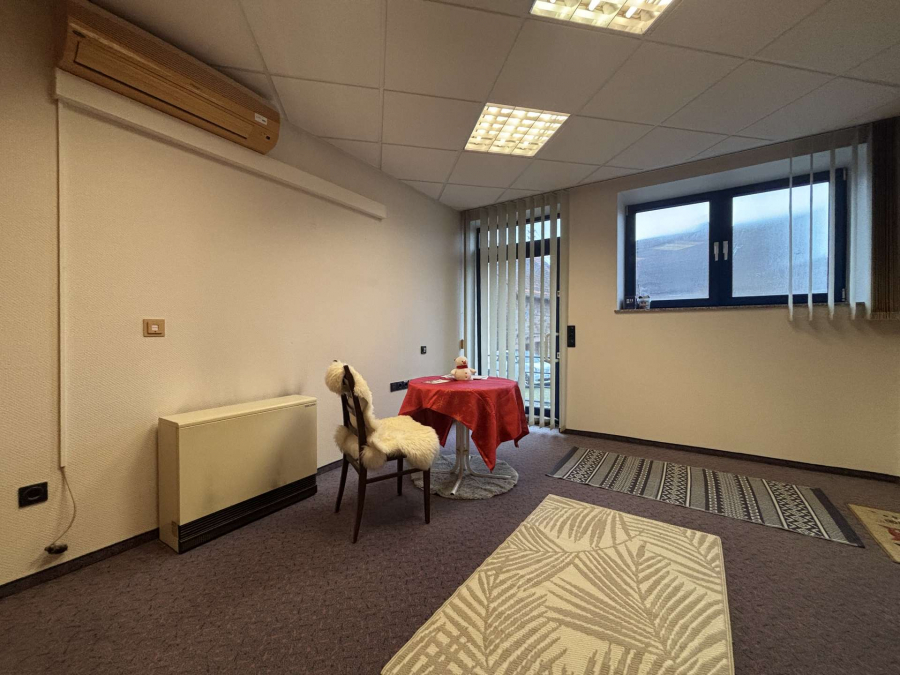 Die Gewerbeeinheit verfügt über mehrere große Fenster, eine abgehängte Decke mit integrierter Beleuchtung sowie gut nutzbare Grundrisse. Die zentrale Lage im Ort bietet eine gute Sichtbarkeit sowie eine praktische Erreichbarkeit für Mitarbeiter, Kunden und Lieferanten.