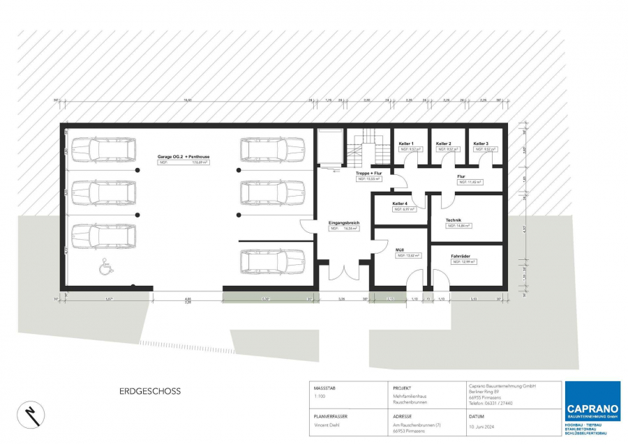 Erdgeschoss: Garage, Kellerräume, Technik