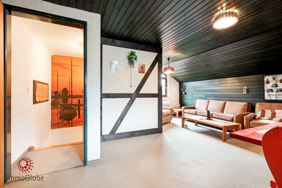 Zusätzliche Wohnfläche bieten ein wohnlich ausgebautes Zimmer im Untergeschoss – ideal als Büro, Hobby- oder Gästezimmer – sowie ein weiteres praktisches Zimmer im Dachgeschoss. Der übrige Dachraum ist aktuell nicht erschlossen.