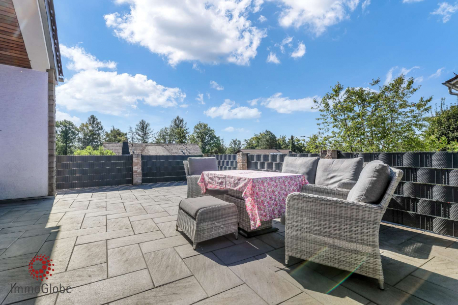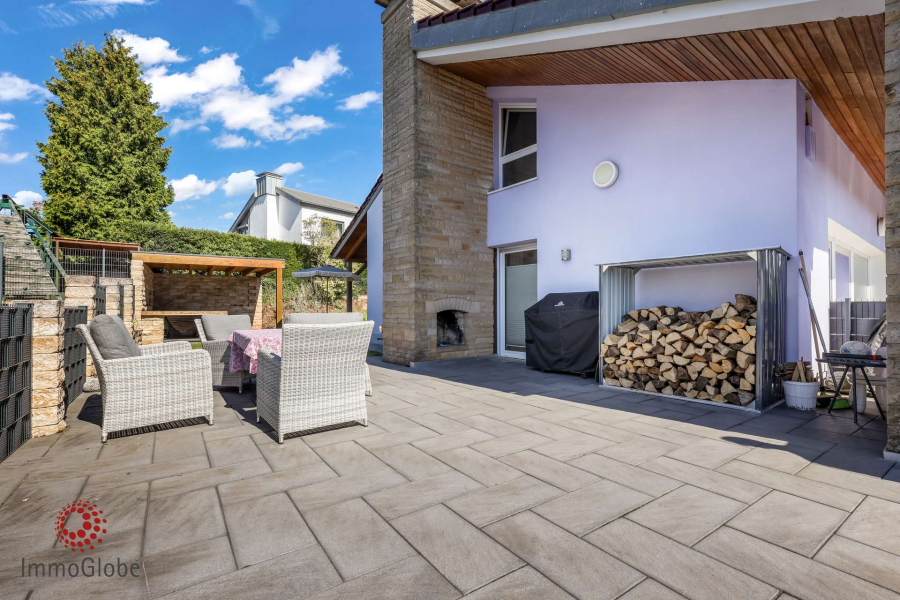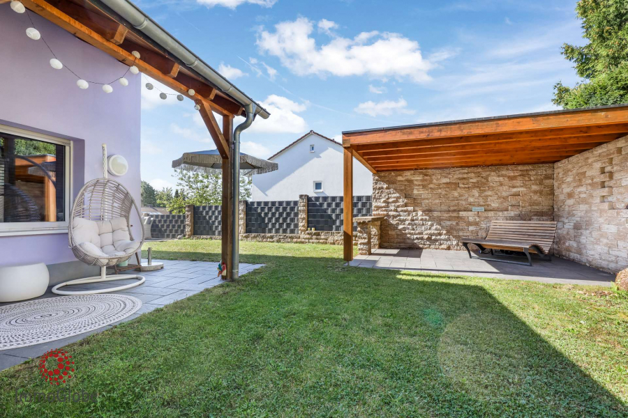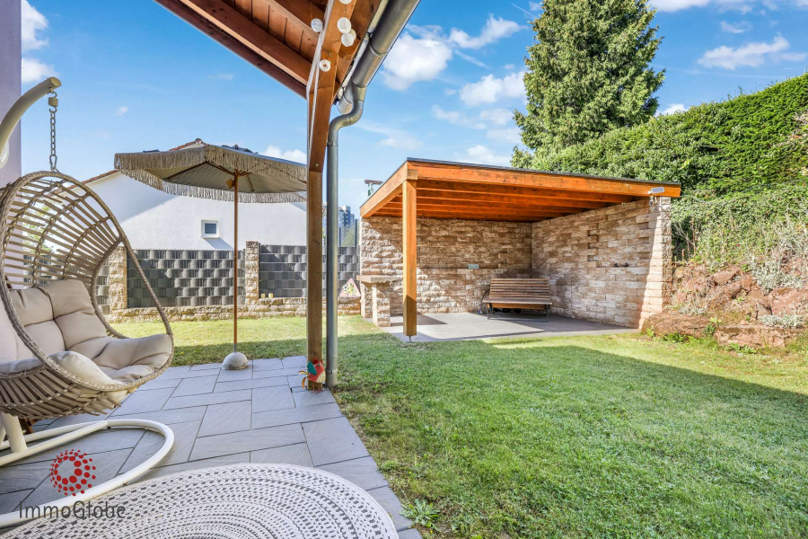 Die Außenanlage wurde ebenfalls komplett neu angelegt und überzeugt mit einer großzügigen Terrasse samt Freisitz. Ein moderner Pavillon mit allen erforderlichen Anschlüssen bietet die ideale Basis, um hier eine vollwertige Sommerküche einzurichten und gesellige Stunden im Freien zu genießen. Zwei Garagenstellplätze sowie drei zusätzliche Stellflächen direkt vor dem Haus runden das Angebot ab.