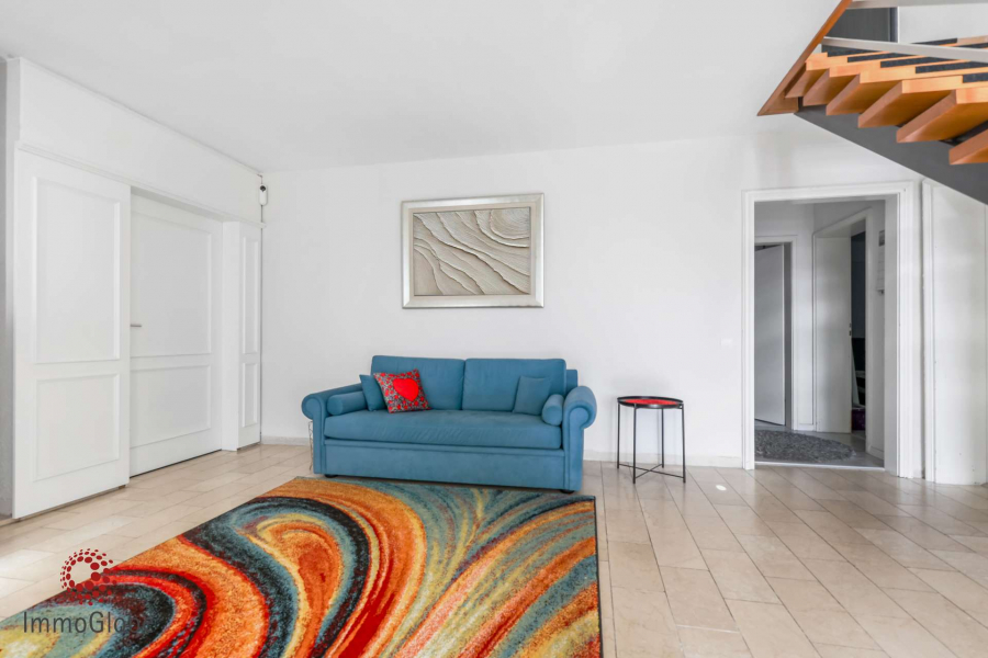 Erdgeschoss: Offenes Wohn- und Esszimmer mit Zugang zum Garten, Elternschlafzimmer, moderne Küche, großzügiges Badezimmer mit Ankleide.