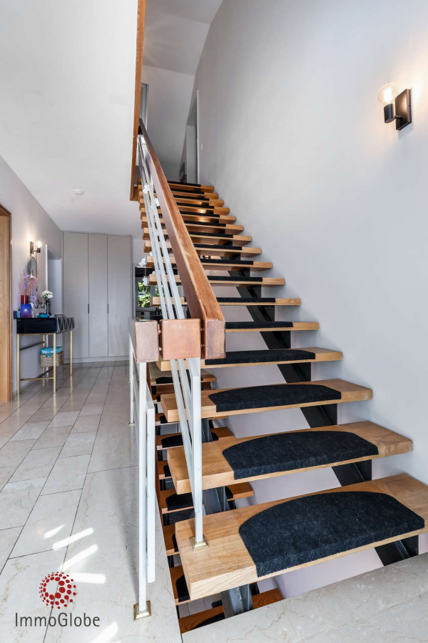 Bereits beim Betreten des Hauses wird deutlich, dass hier großer Wert auf Qualität und Komfort gelegt wurde. Sämtliche Fenster wurden durch neue Kunststoffelemente mit Rollläden bzw. Jalousien ersetzt, das Dach erneuert und die Fassade vollständig gedämmt. Zudem erhielt das Haus eine neue Elektroinstallation und eine moderne Gasheizung (2016). Die beiden Badezimmer im Erd- und Dachgeschoss wurden stilvoll saniert – ein besonderes Highlight ist das großzügige Bad im Erdgeschoss, das direkten Zugang zum Elternschlafzimmer und zu einem begehbaren Kleiderschrank bietet.