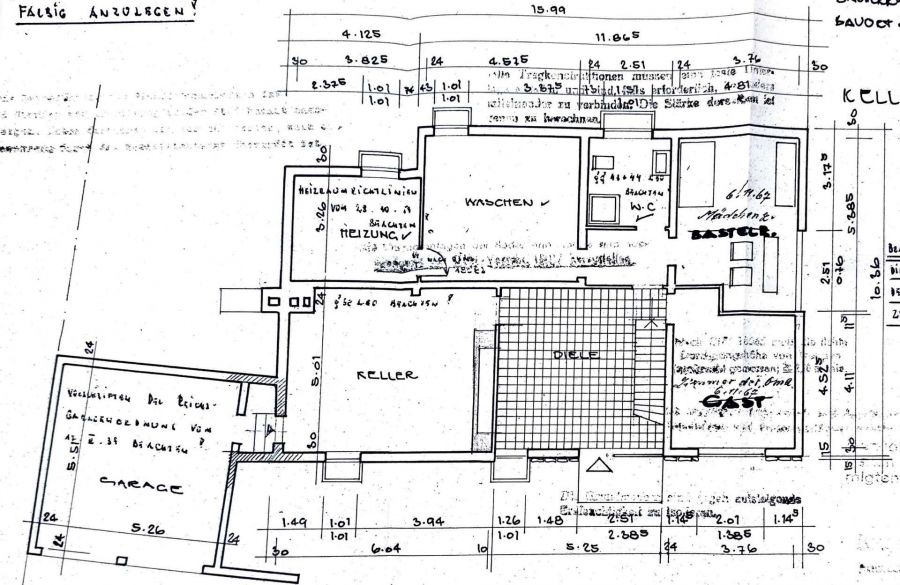 Souterrain: Eingangsbereich, zwei Schlafzimmer, Badezimmer, Waschküche, Heizraum, Kellerraum, Garage mit direktem Hauszugang.