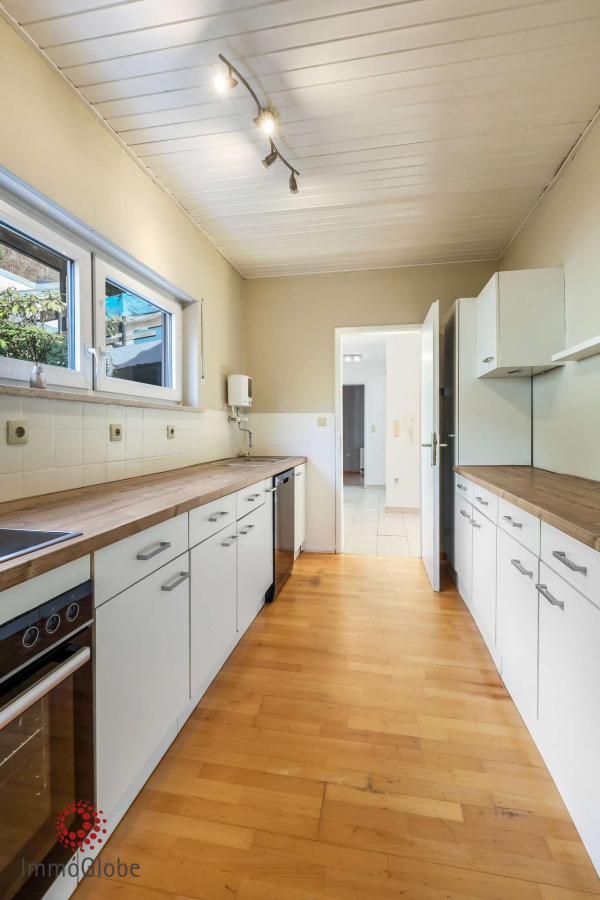 Ebenfalls auf dieser Ebene befinden sich die Küche (Einbauküche aus 2022) sowie ein Gäste-WC. Das Schlafzimmer liegt ruhig und gut proportioniert im hinteren Bereich.