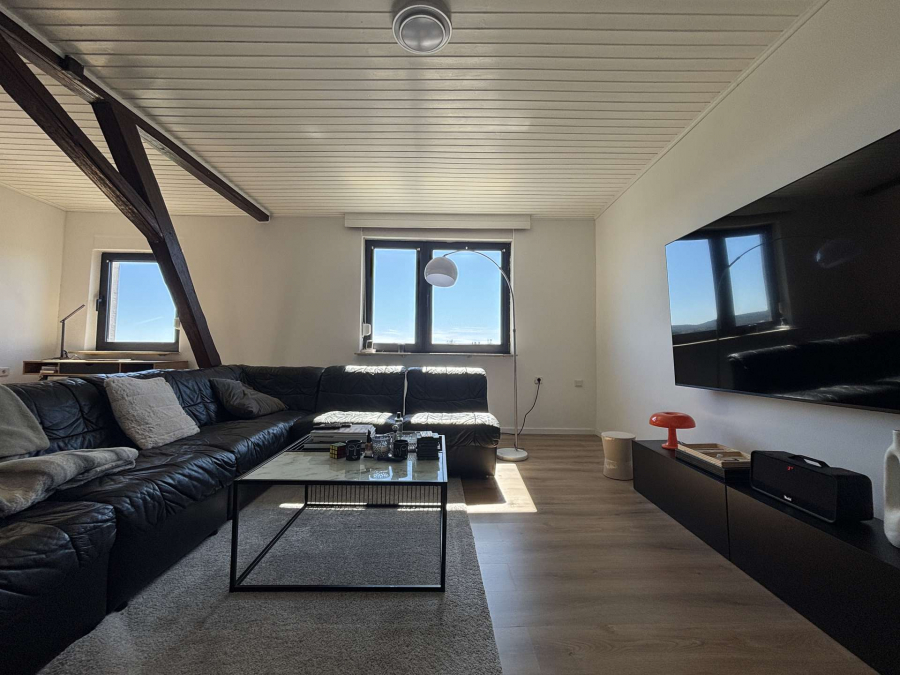 Die hochwertig möblierte Wohnung im 2. Obergeschoss eines gepflegten Hauses erstreckt sich über zwei Etagen. Das große, lichtdurchflutete Wohnzimmer mit schönem Weitblick bildet das Herzstück und lädt zum Entspannen ein.