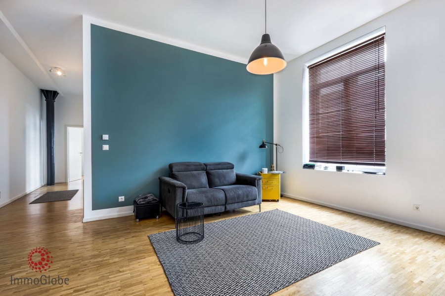 Entdecken Sie urbanes Wohnen auf höchstem Niveau in dieser einzigartigen Loftwohnung, die in einer ehemaligen Schuhfabrik untergebracht ist. Das Gebäude wurde komplett saniert und verbindet historischen Charme mit modernem Komfort. Auf großzügigen 101m² erwartet Sie ein beeindruckender Wohn- und Essbereich, der durch seine offene Gestaltung viel Raum für individuelle Einrichtungsideen bietet. Ein Gäste-WC und ein Büro sorgt für zusätzlichen Komfort.